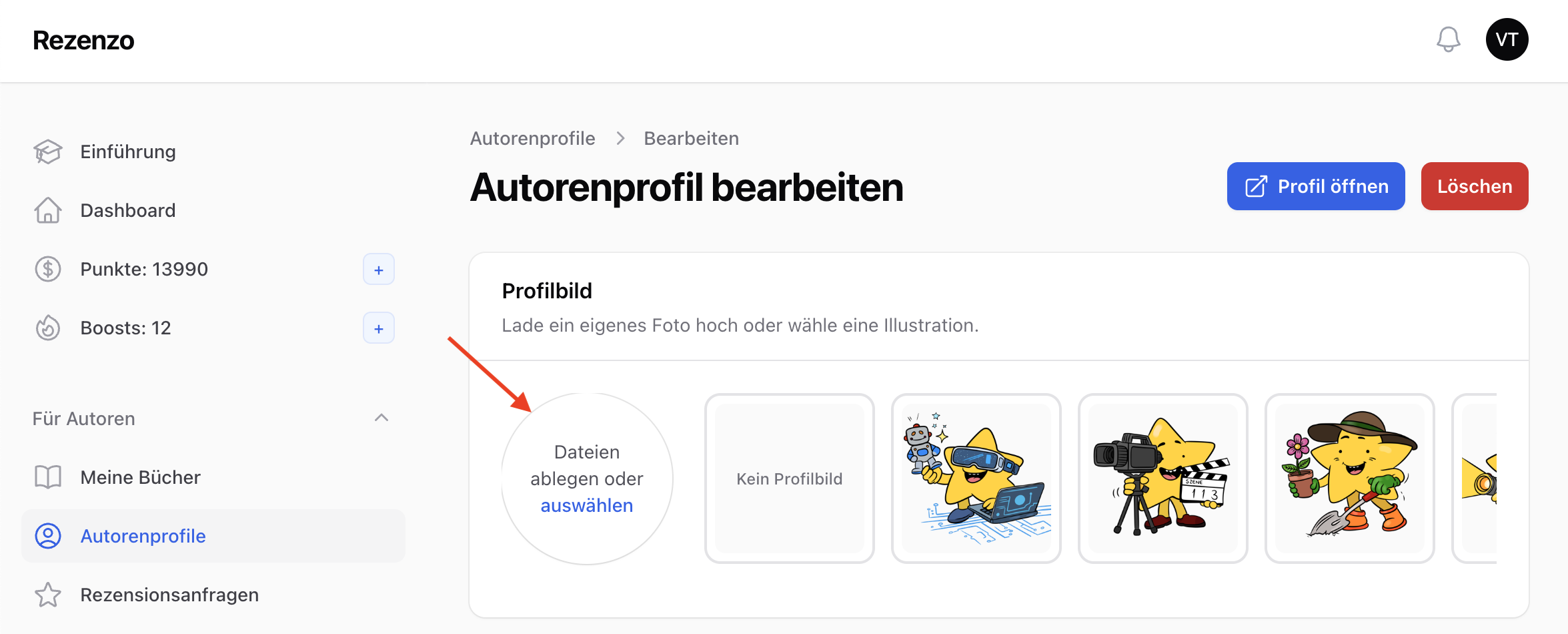 1. Autorenprofil öffnen
